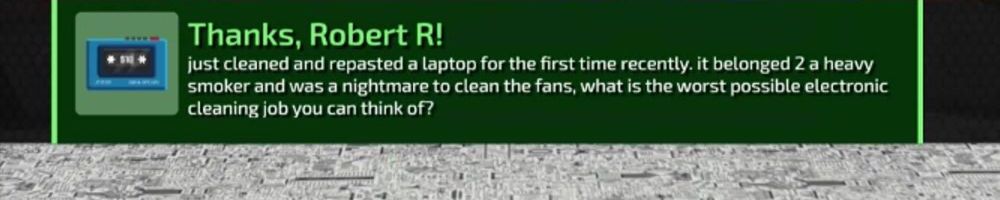 just cleaned and repasted a laptop for the first time recently. it belonged 2 a heavy smoker and was a nightmare to clean the fans, what is the worst possible electronic cleaning job you can think of?