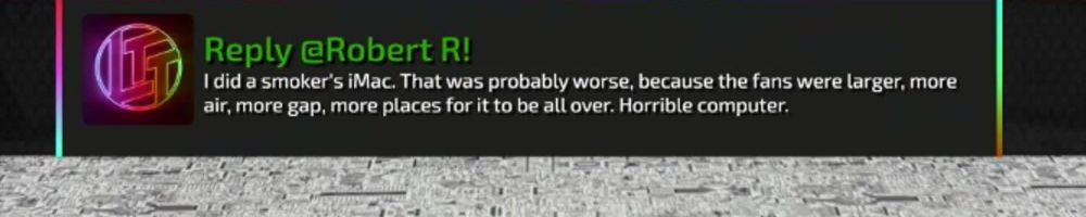 I did a smoker's iMac. That was probably worse, because the fans were larger, more air, more gap, more places for it to be all over. Horrible computer.