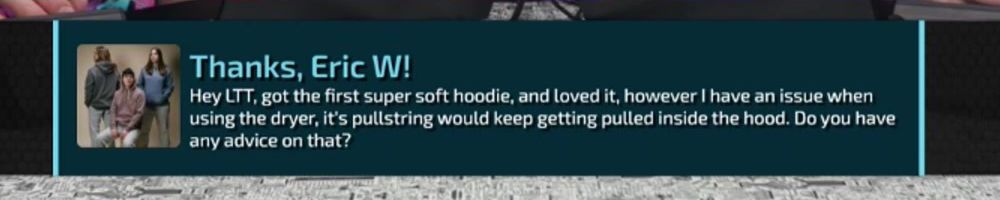 Hey LTT, got the first super soft hoodie, and loved it, however I have an issue when using the dryer, it's pullstring would keep getting pulled inside the hood. Do you have any advice on that?