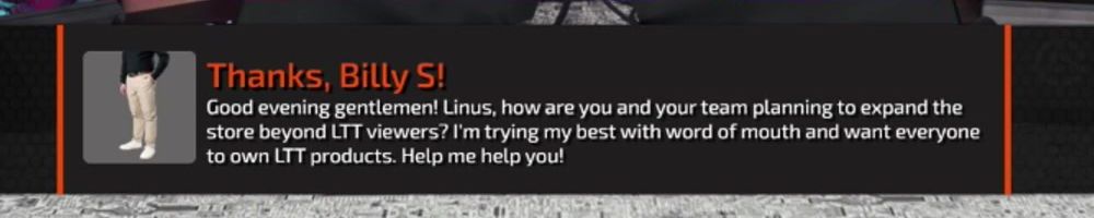 Good evening gentlemen! Linus, how are you and your team planning to expand the store beyond LTT viewers? I'm trying my best with word of mouth and want everyone to own LTT products. Help me help you!
