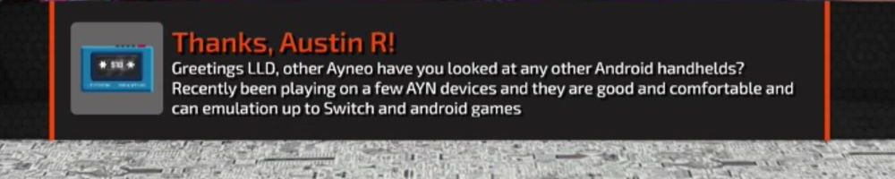 Greetings LLD, other Ayneo have you looked at any other Android handhelds? Recently been playing on a few AYN devices and they are good and comfortable and can emulation up to Switch and android games