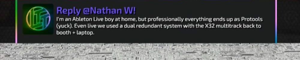 I'm an Ableton Live boy at home, but professionally everything ends up as Protools (yuck). Even live we used a dual redundant system with the X32 multitrack back to booth + laptop.