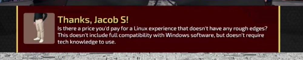 Is there a price you'd pay for a Linux experience that doesn't have any rough edges? This doesn't include full compatibility with Windows software, but doesn't require tech knowledge to use.