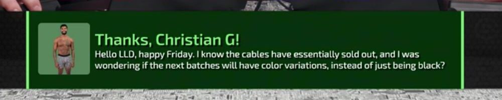 Hello LLD, happy Friday. I know the cables have essentially sold out, and I was wondering if the next batches will have color variations, instead of just being black?
