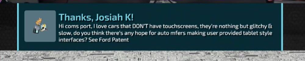 Hi coms port, I love cars that DON'T have touchscreens, they're nothing but glitchy & slow, do you think there's any hope for auto mfers making user provided tablet style interfaces? See Ford Patent