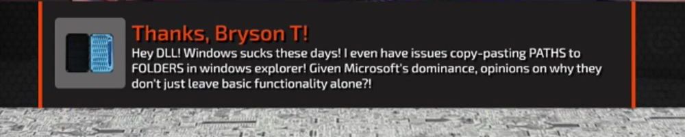 Hey DLL! Windows sucks these days! I even have issues copy-pasting PATHS to FOLDERS in windows explorer! Given Microsoft's dominance, opinions on why they don't just leave basic functionality alone?!
