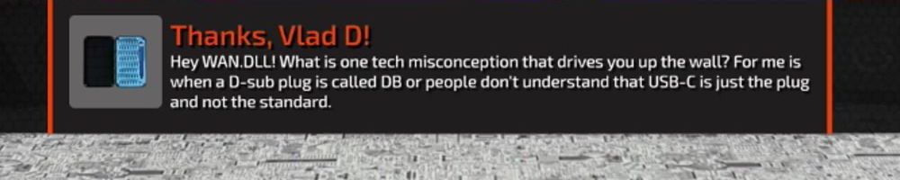 Hey WAN.DLL! What is one tech misconception that drives you up the wall? For me is when a D-sub plug is called DB or people don't understand that USB-C is just the plug and not the standard.