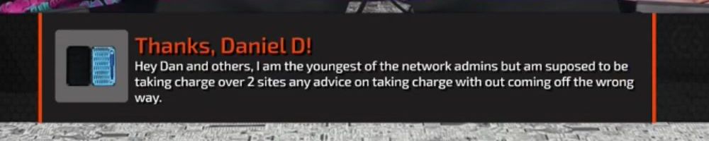 Hey Dan and others, I am the youngest of the network admins but am suposed to be taking charge over 2 sites any advice on taking charge with out coming off the wrong way.