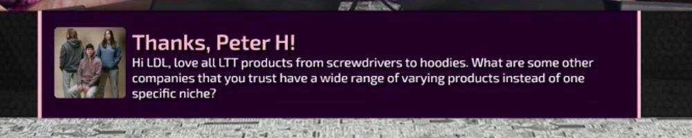 Hi LOL, love all LTT products from screwdrivers to hoodies. What are some other companies that you trust have a wide range of varying products instead of one specific niche?