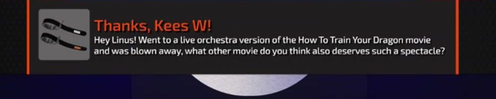 Hey Linus! Went to a live orchestra version of the How To Train Your Dragon movie and was blown away, what other movie do you think also deserves such a spectacle?
