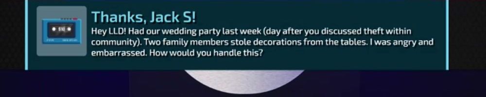 Hey LLD! Had our wedding party last week (day after you discussed theft within community). Two family members stole decorations from the tables. I was angry and embarrassed. How would you handle this?