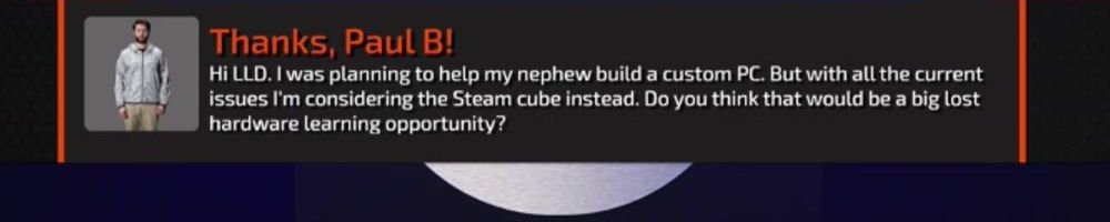 Hi LLD. I was planning to help my nephew build a custom PC. But with all the current issues I'm considering the Steam cube instead. Do you think that would be a big lost hardware learning opportunity?