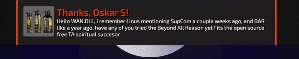 Hello WAN.DLL, i remember Linus mentioning SupCom a couple weeks ago, and BAR like a year ago, have any of you tried the Beyond All Reason yet? its the open source free TA spiritual succesor