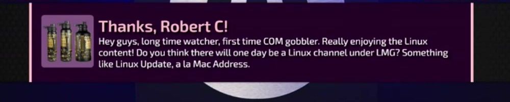 Hey guys, long time watcher, first time COM gobbler. Really enjoying the Linux content! Do you think there will one day be a Linux channel under LMG? Something like Linux Update, a la Mac Address.