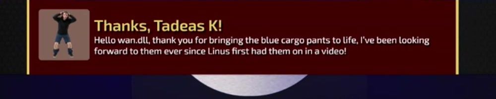Hello wan.dll, thank you for bringing the blue cargo pants to life, I've been looking forward to them ever since Linus first had them on in a video!