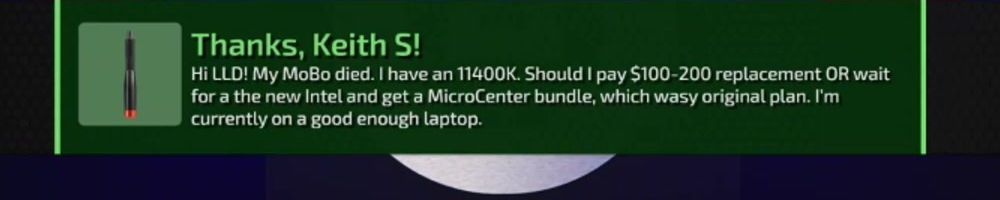 Hi LLD! My MoBo died. I have an 11400K. Should I pay $100-200 replacement OR wait for a the new Intel and get a MicroCenter bundle, which wasy original plan. I'm currently on a good enough laptop.