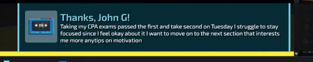 Taking my CPA exams passed the first and take second on Tuesday I struggle to stay focused since I feel okay about it I want to move on to the next section that interests me more anytips on motivation