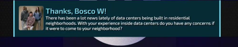 There has been a lot news lately of data centers being built in residential neighborhoods. With your experience inside data centers do you have any concerns if it were to come to your neighborhood?