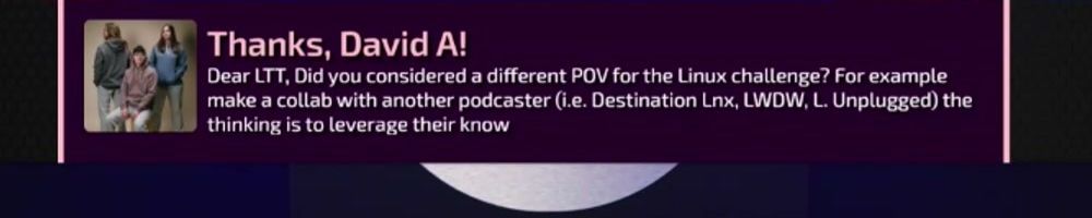 Dear LTT, Did you considered a different POV for the Linux challenge? For example
