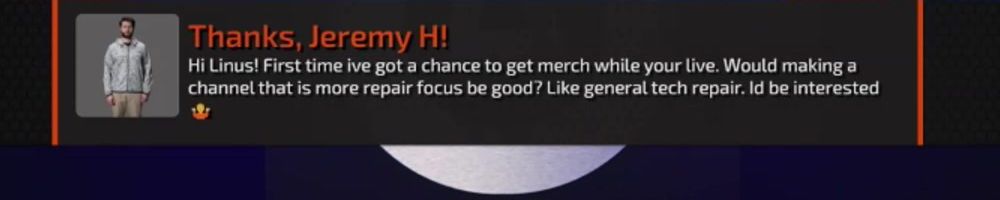 Hi Linus! First time ive got a chance to get merch while your live. Would making a channel that is more repair focus be good? Like general tech repair. Id be interested 🤘