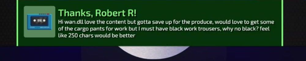 Hi wan.dll love the content but gotta save up for the produce, would love to get some of the cargo pants for work but I must have black work trousers, why no black? feel like 250 chars would be better