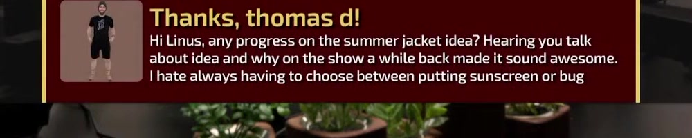 Hi Linus, any progress on the summer jacket idea? Hearing you talk