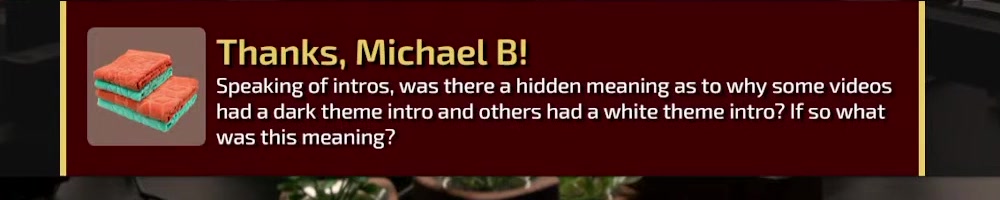 Speaking of intros, was there a hidden meaning as to why some videos