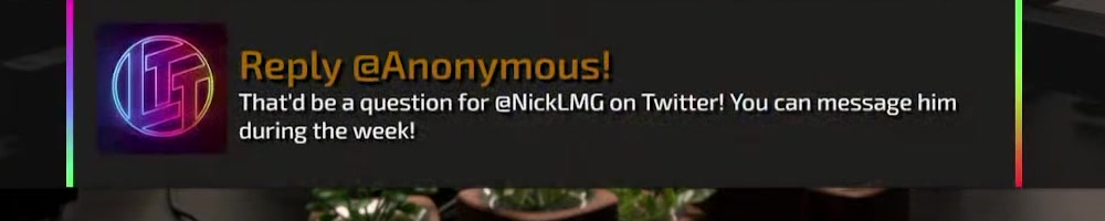 That'd be a question for @NickLMG on Twitter! I know we have a video