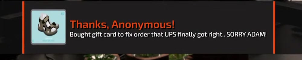 Bought gift card to fix order that UPS finally got right.. SORRY ADAM!