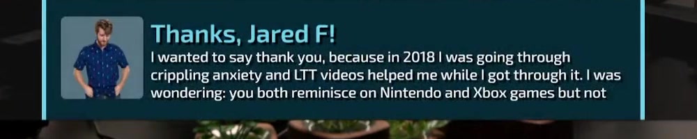 crippling anxiety and LTT videos helped me while I got through it. I was