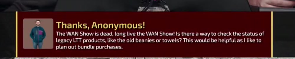 credit to buy the original backpack. Thanks for the great merch LTT and DLL! | Timestamp |  |