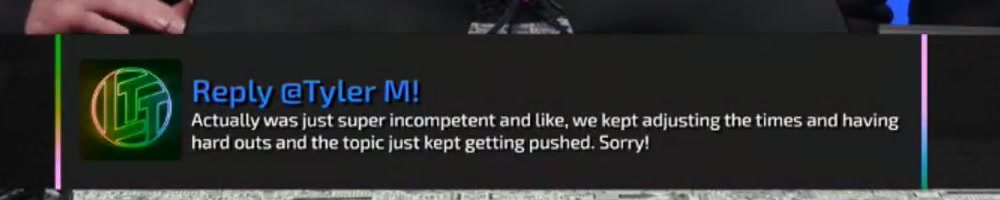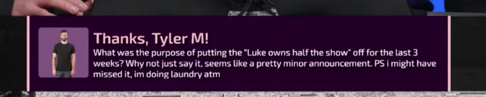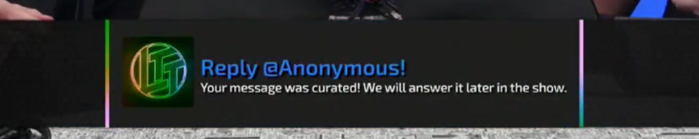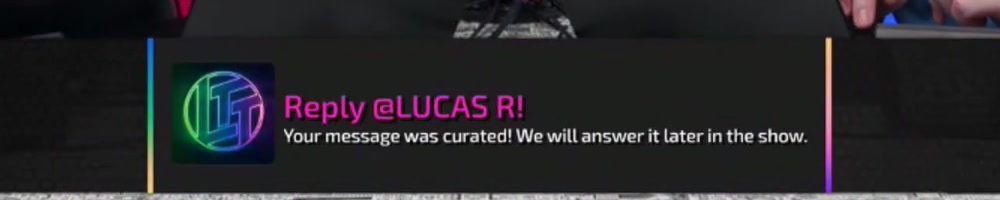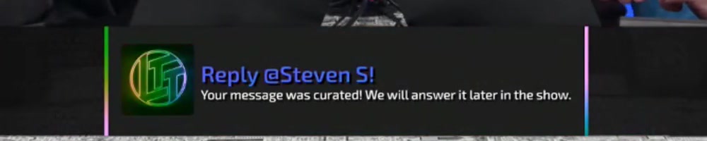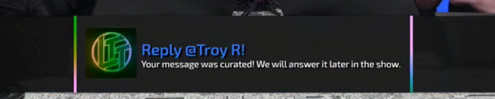 Your message was curated! We will answer it later in the show. | Timestamp |  |