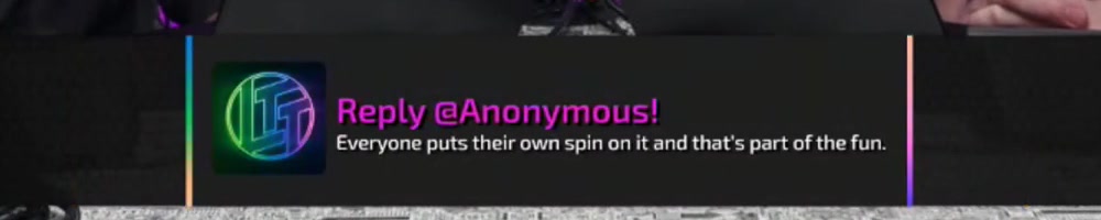 Everyone puts their own spin on it and that's part of the fun. | Timestamp |  |