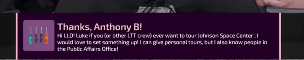 Hi LLD! Luke if you (or other LTT crew) ever want to tour Johnson Space Center, I
