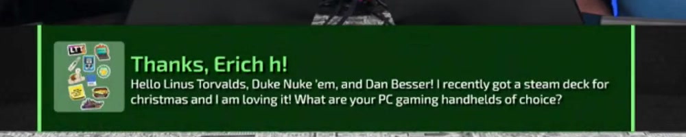 Greetings WAN.DLL from the UK. Question for Linus about his hands on with Steam