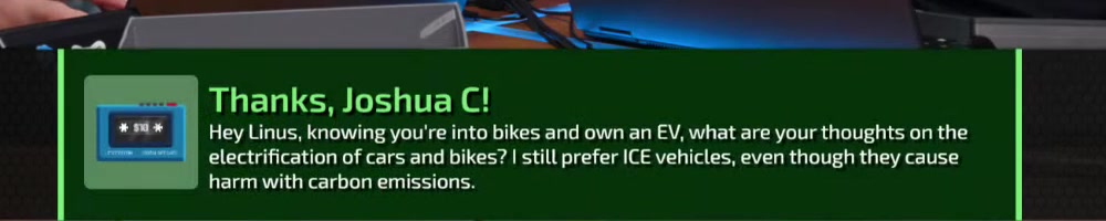 Hey Linus, knowing you're into bikes and own an EV, what are your thoughts on the