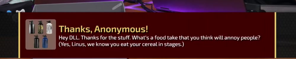 (Yes, Linus, we know you eat your cereal in stages.) | Timestamp |  |