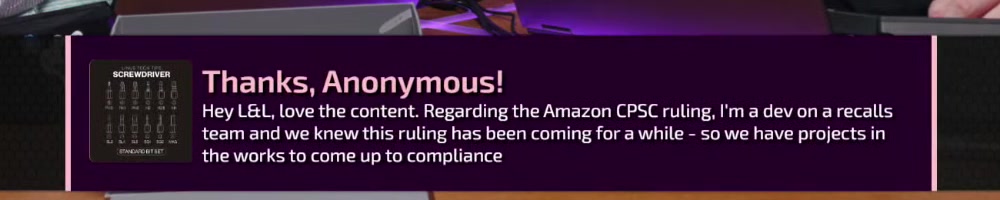 Hey L&L, love the content. Regarding the Amazon CPSC ruling, I'm a dev on a recalls