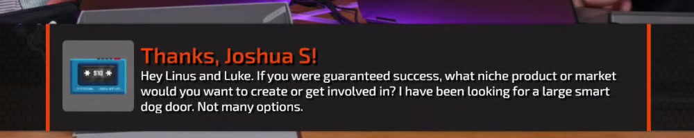 Hey Linus and Luke. If you were guaranteed success, what niche product or market