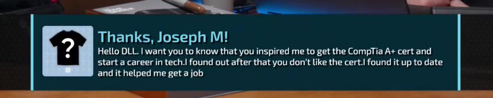 Hello DLL. I want you to know that you inspired me to get the CompTia A+ cert and