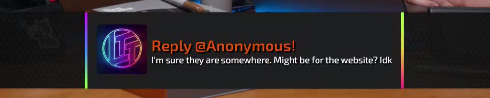 Love watching the WAN Show and LTT. Keep up the awesome content. | Timestamp |  |
