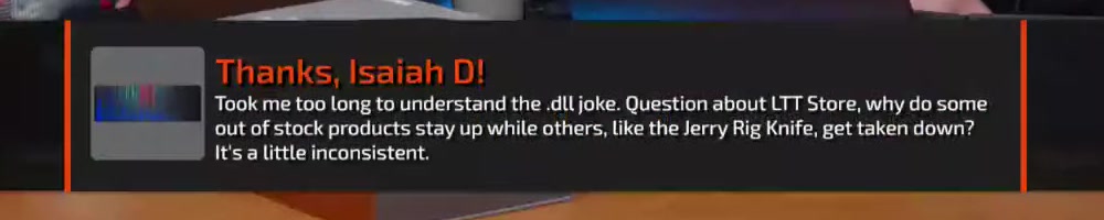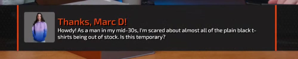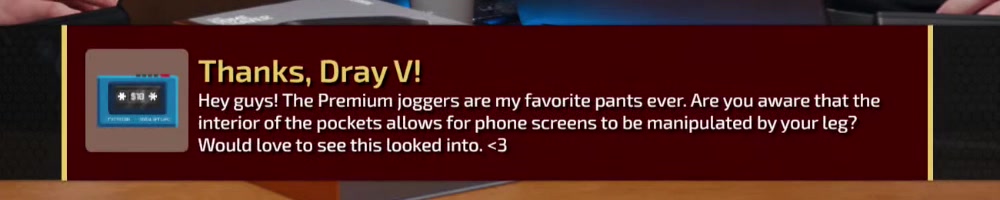 pants when? Looking forward to that new ltt style for the colder months. | Timestamp |  |
