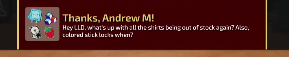 | Aiden A | message | Thanks, Aiden A!