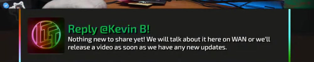 Nothing new to share yet! We will talk about it here on WAN or we'll