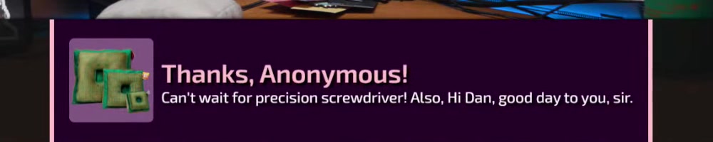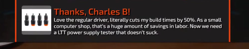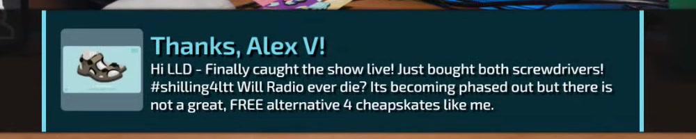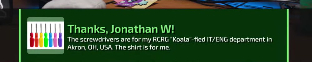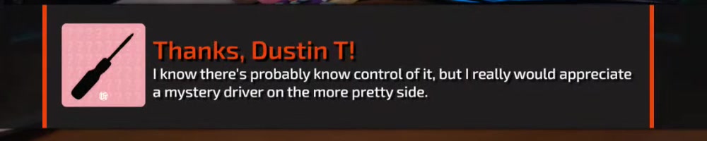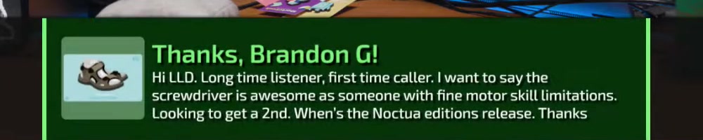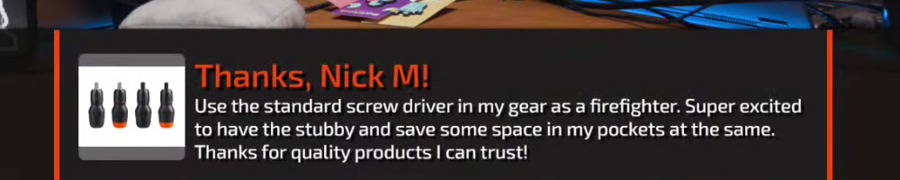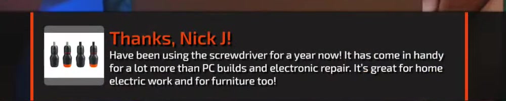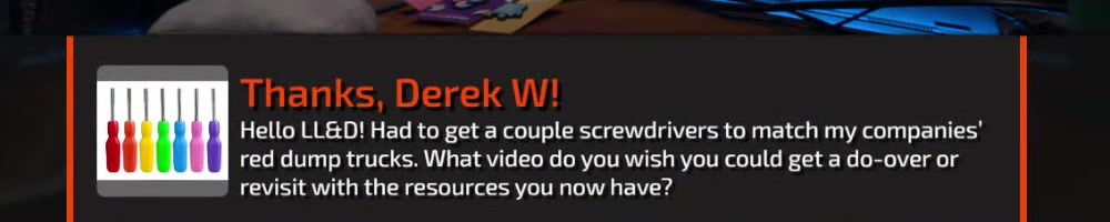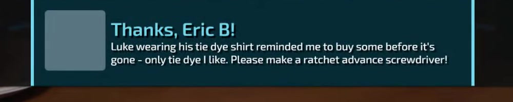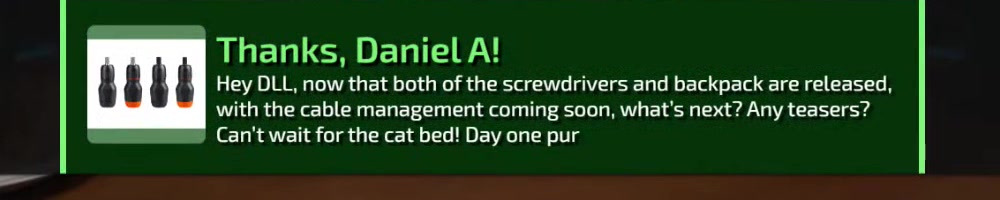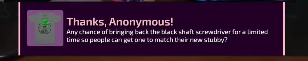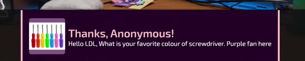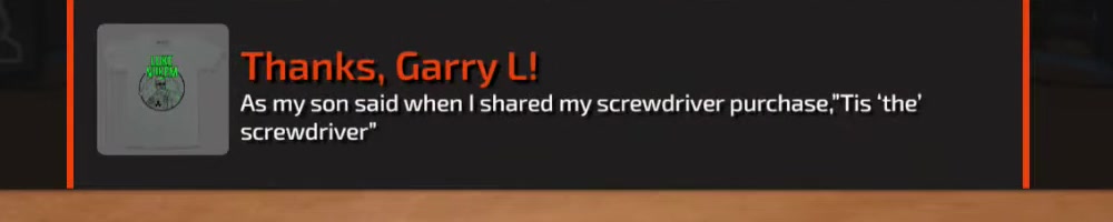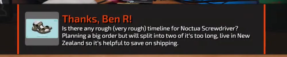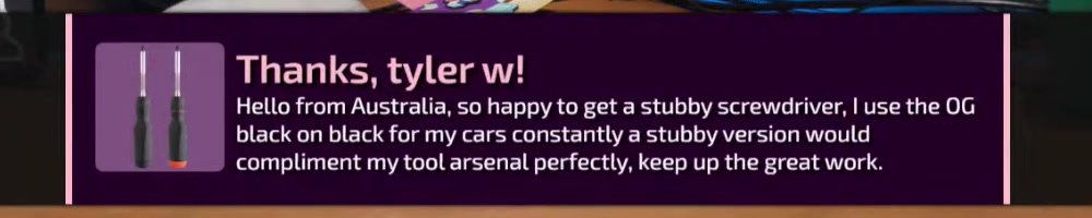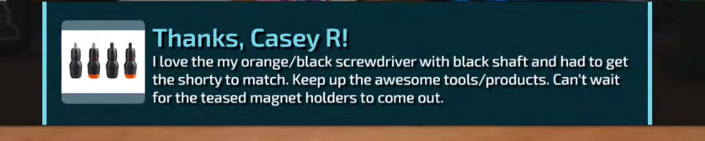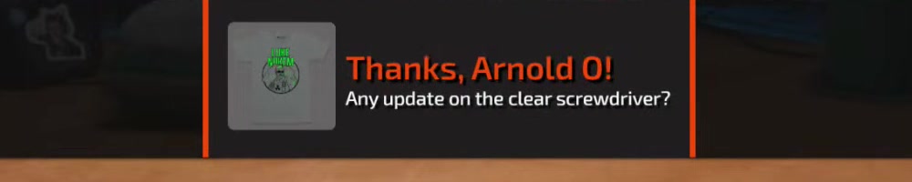 Any update on the clear screwdriver? | Timestamp |  |