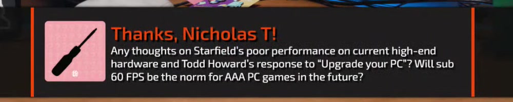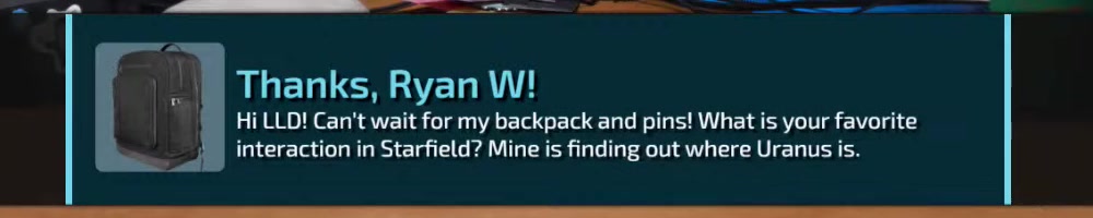 interaction in Starfield? Mine is finding out where Uranus is. | Timestamp |  |