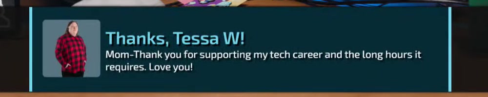 | Taramina G | message | Thanks, Taramina G!