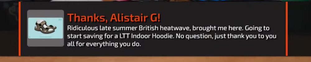 start saving for a LTT Indoor Hoodie. No question, just thank you to you