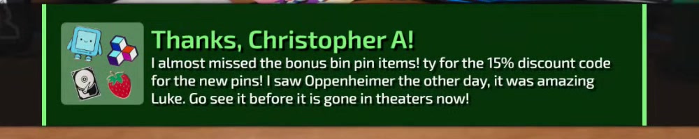 | Christopher C | message | Thanks, Christopher C!