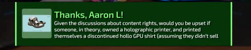 themselves a discontinued hollo GPU shirt (assuming they didn't sell | Timestamp |  |